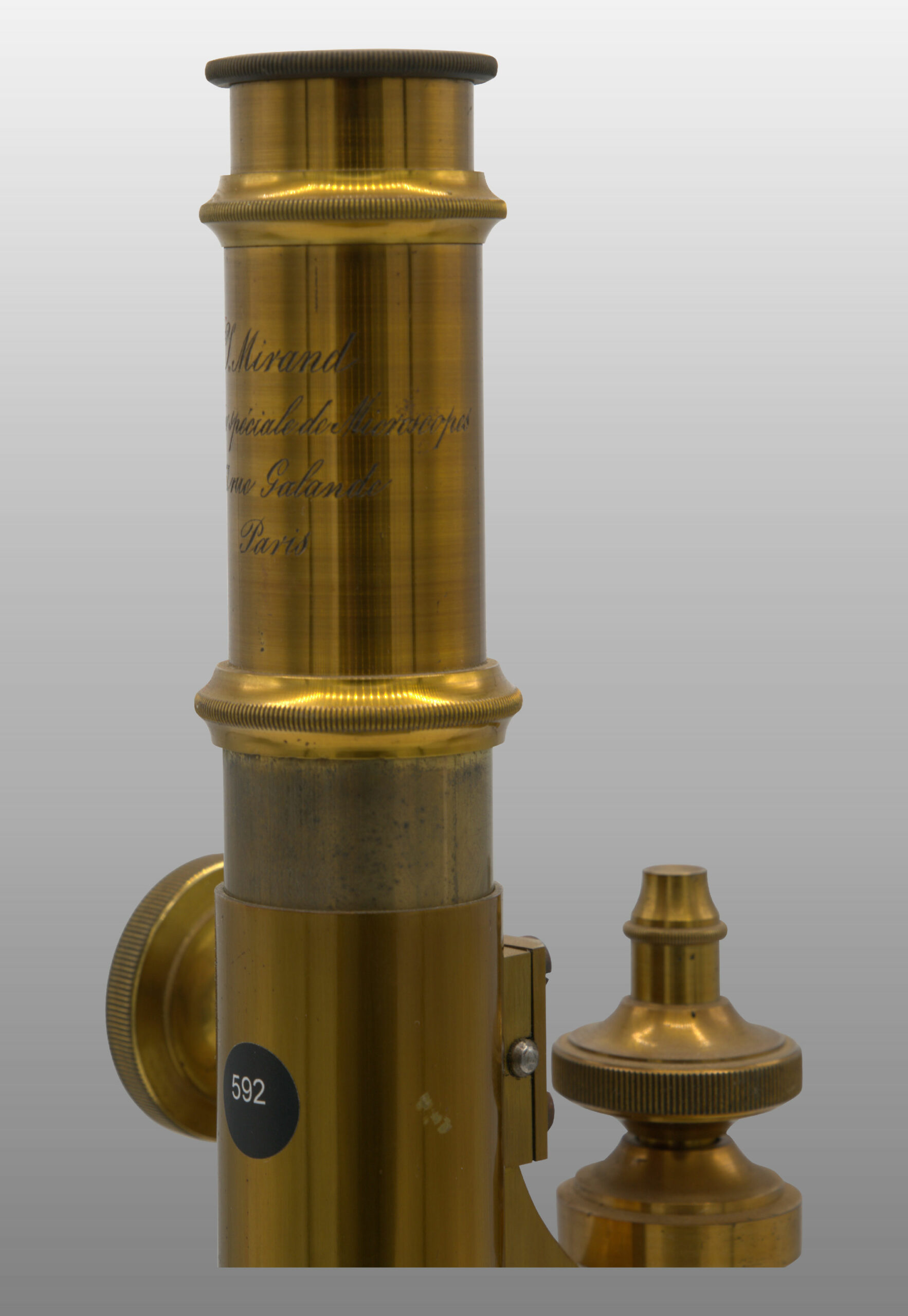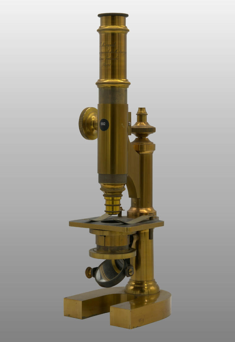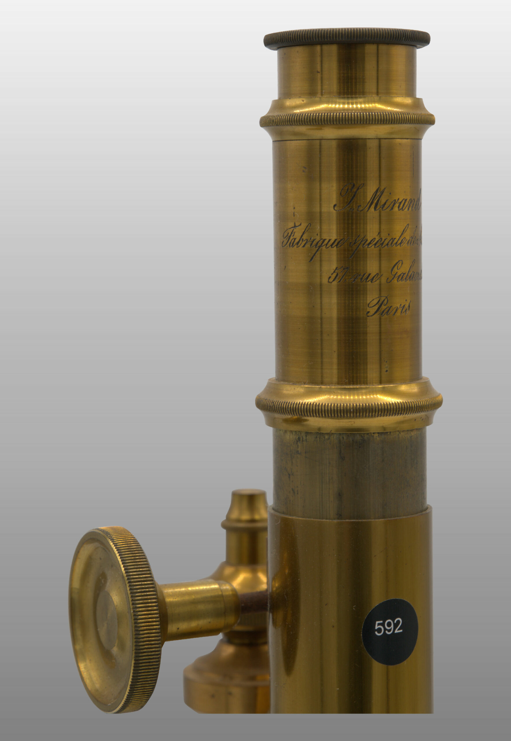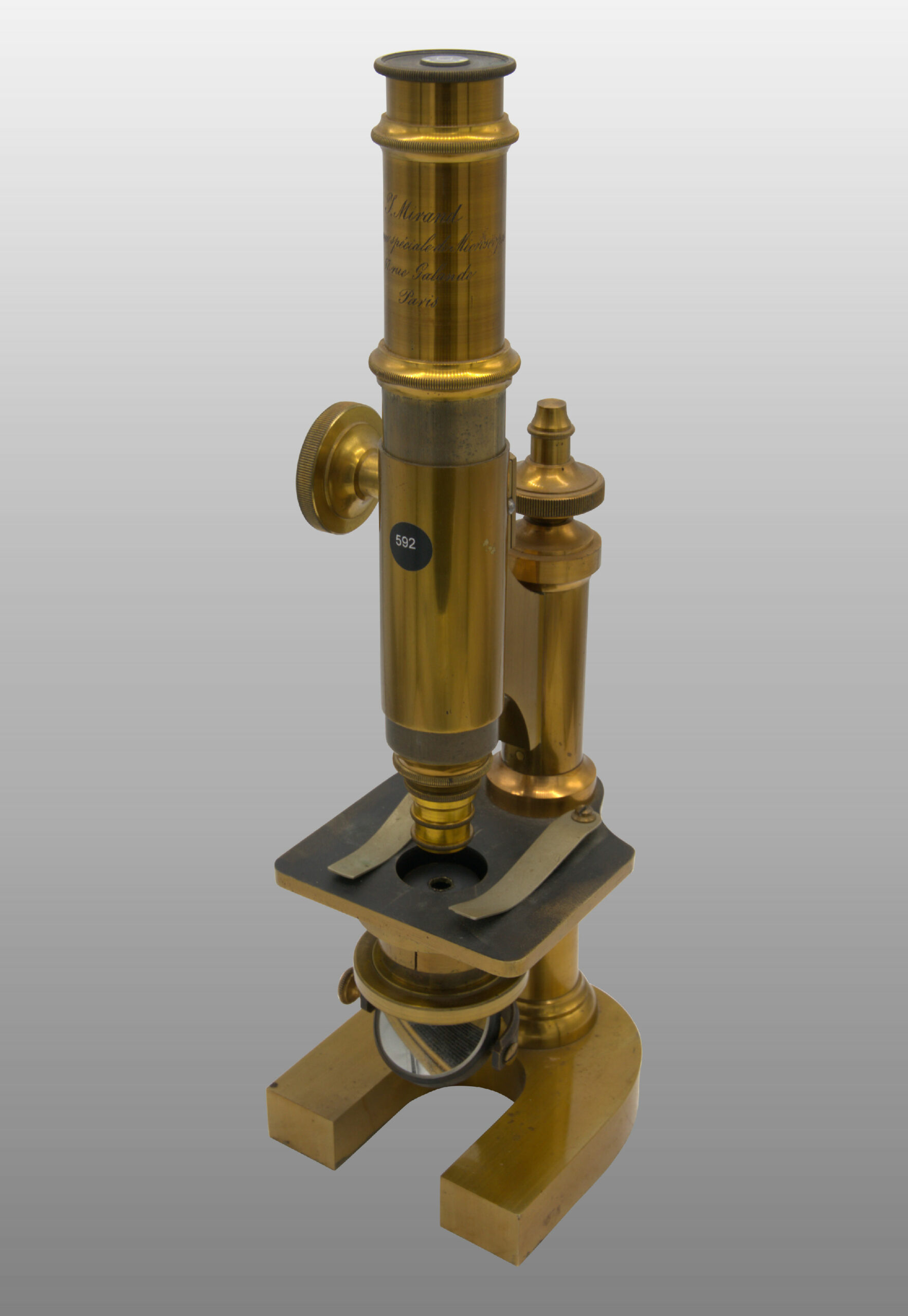 592 Microscope achromatique Mirand, monté droit fixe.