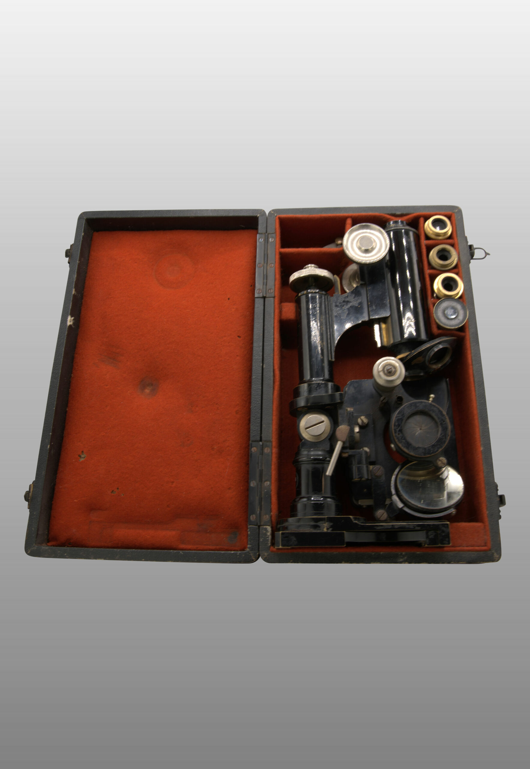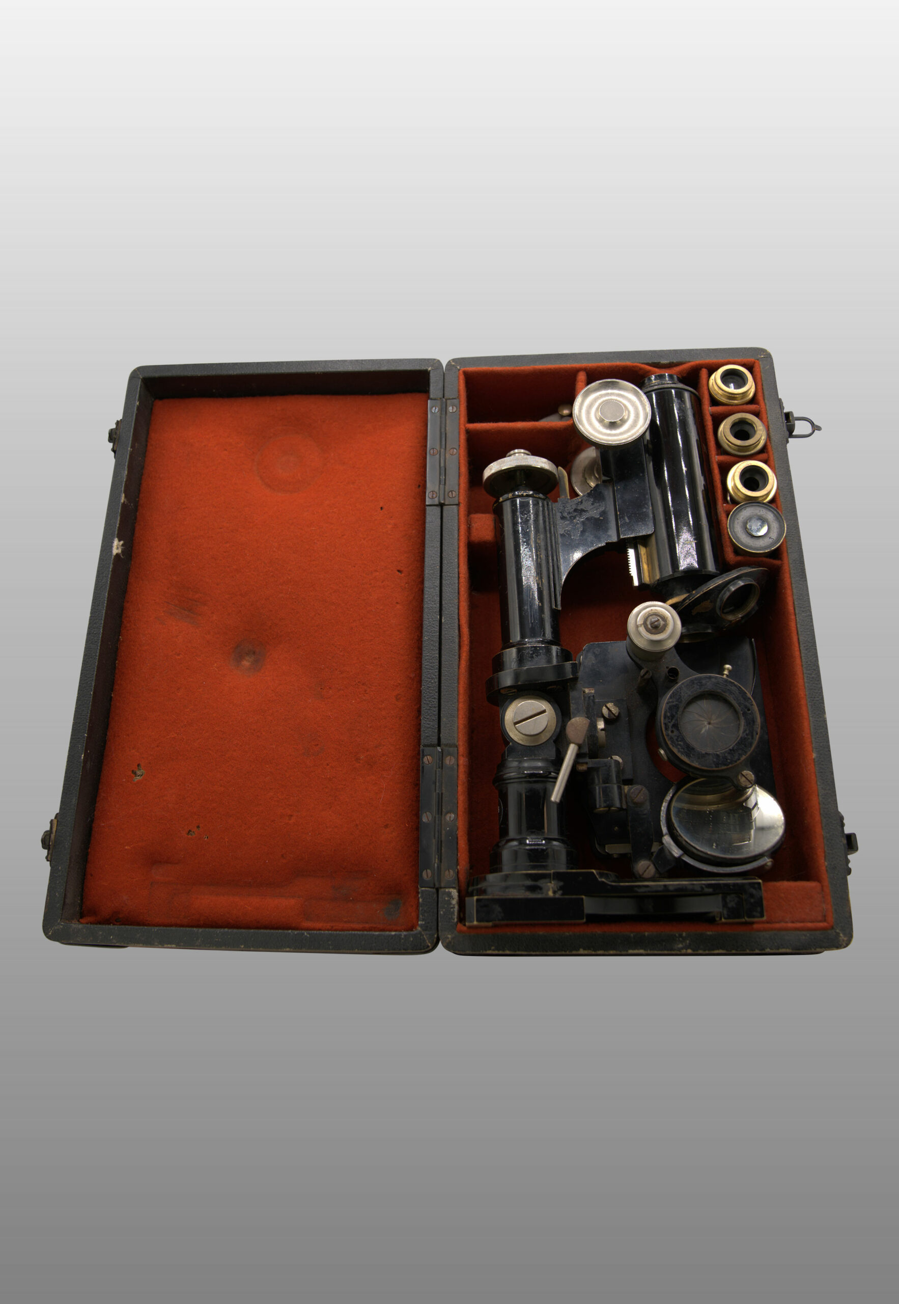 Ce microscope peut être complétement replié et rentré dans un petit coffret de transport.